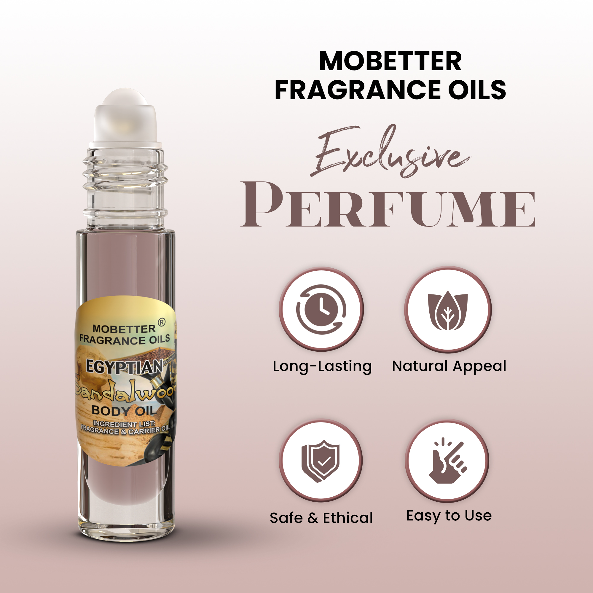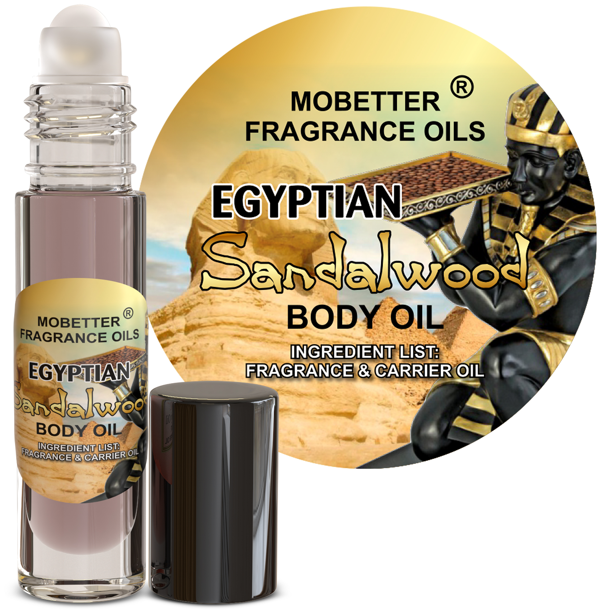 Egyptian Sandalwood Fragrance Body Oil 0.33 Oz Roll On Glass Bottle