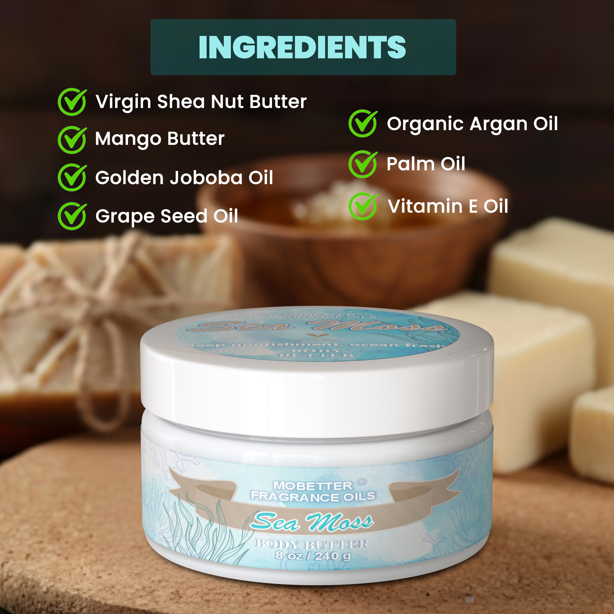Sea Moss 8 Oz Body Butter for Unisex